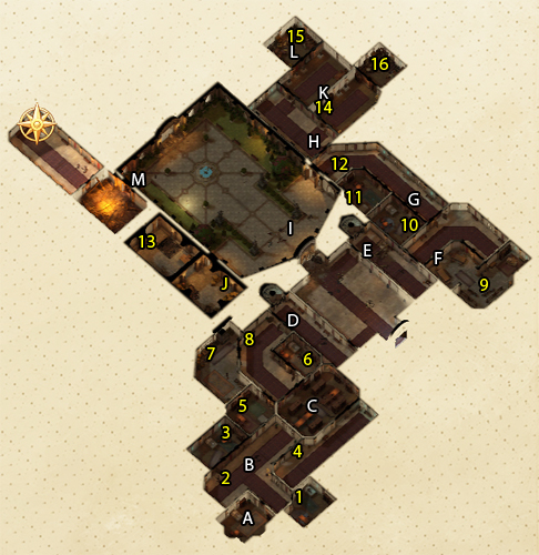 - 첫 번째 방에는 '완드 마력유도탄' 이 있다. 캐릭터의 기술 '마법 도구 사용'이 높으면 완드를 사용하여 전투를 쉽게 풀어갈 수 있다.