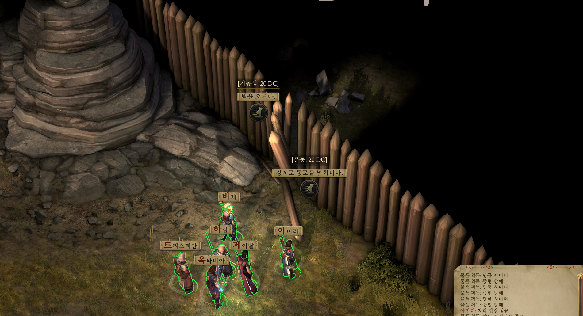 - 벽을 오른다(기동성 DC 20)의 경우, 실패하면 더이상 벽을 넘어 오를 수 없다.
