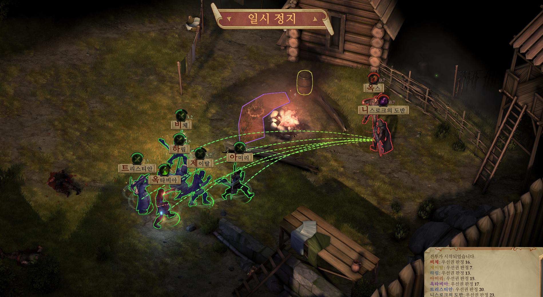 - 여러 선택지가 있는데, 공격하거나 판정에 실패하면 I지역 및 N지역에 있는 도적들과 전투가 발생한다. (미리 해당 지역의 도적들을 제거하도록 하자.)