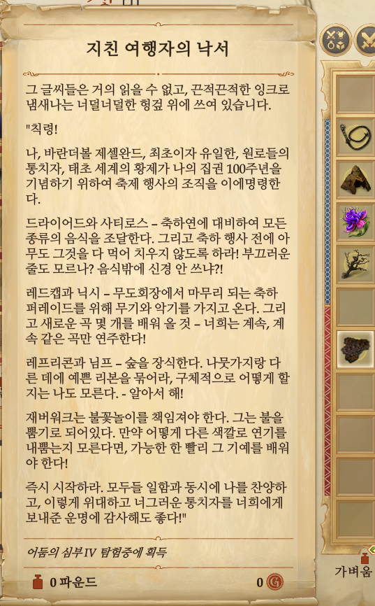 아이템5: 어둠의 심부에서 나온 밤의 고글의 낡은 조각 외 잡템