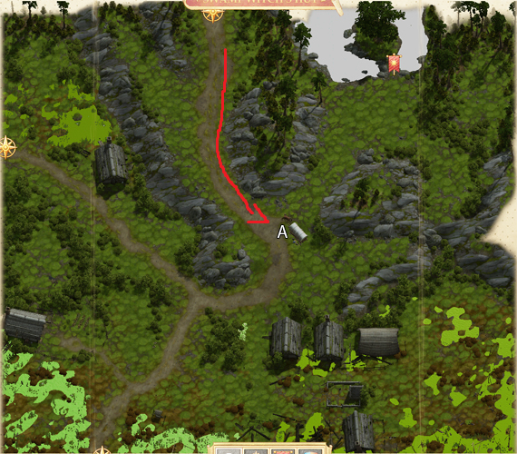 - 선술집으로 가서 린지와 대화를 하자. 이제 린지와 함께 인쇄기를 찾으러 가 보자. '늪 마녀의 오두막'에 있다.