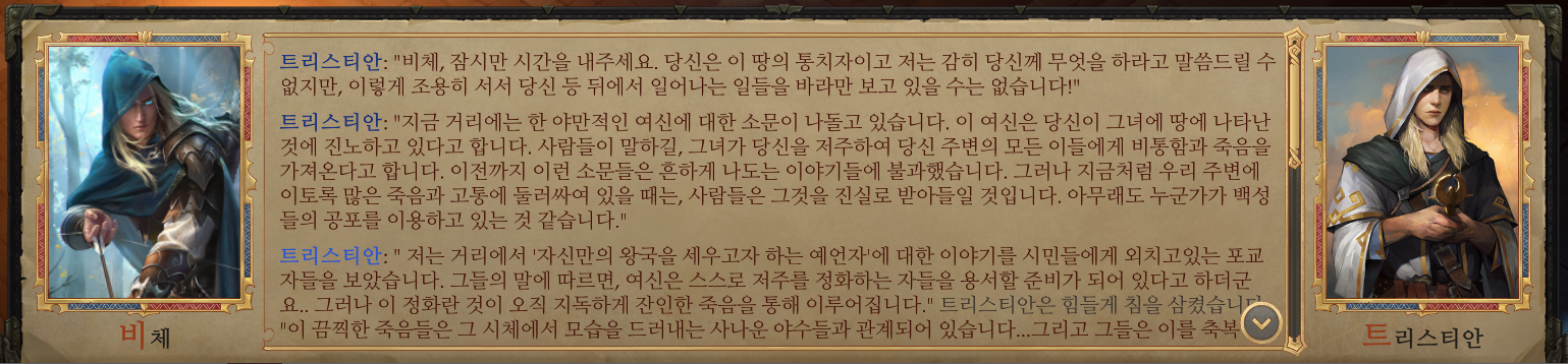 - 수도에서 영지관리를 하다보면, 알현실에 트리스티안이 찾아온다.