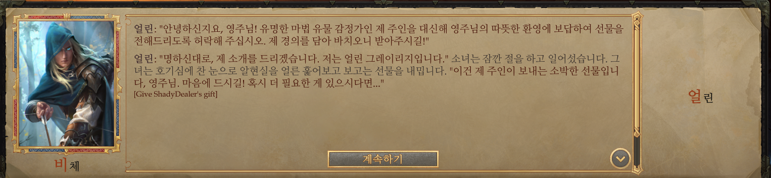 - 영지관리를 하다보면, 얼린이 알현실을 찾아온다.