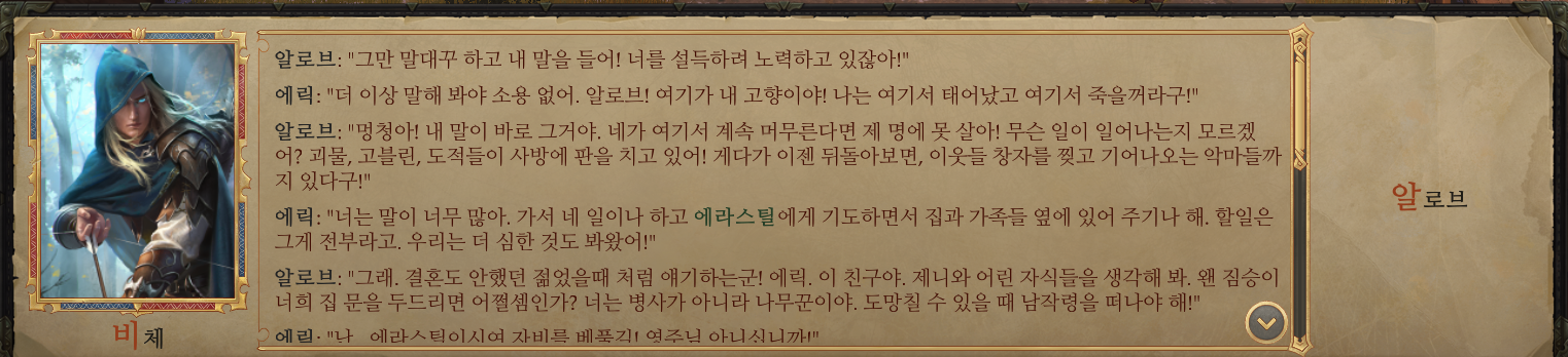 - 슬픔의 씨앗 퀘스트를 완료하고 알현실을 나가면 농부 둘이 말다툼을 하고 있다.