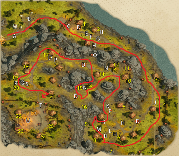 - [지역 Q, R, S]: 샤먼이 의식을 치루고 있다. 어떤 선택을 하든지 샤먼은 도망치고 남은 고블린들과 전투하게 된다. 전투 이후 포로의 처분을 결정할 수 있다.