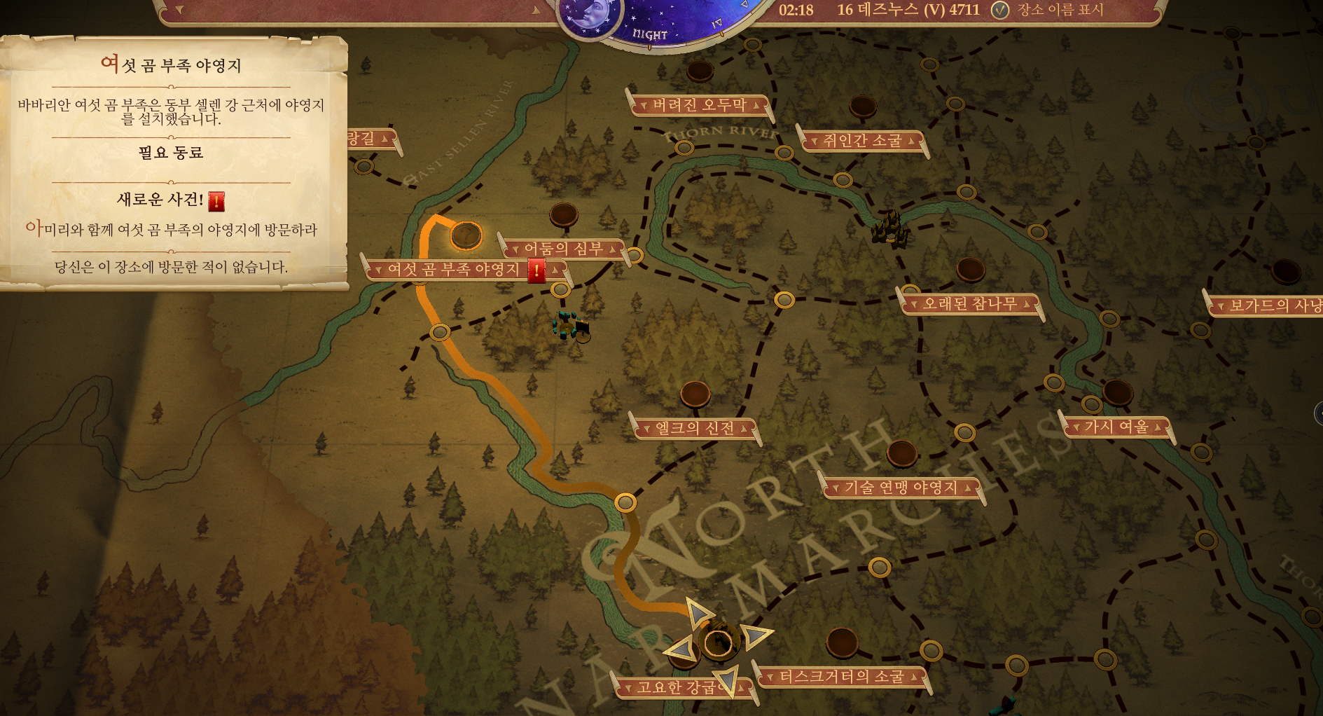 선술집으로 가서 아미리를 만나자. 아미리와 대화 후 여섯 곰 부족의 야영지로 가도록 하자.