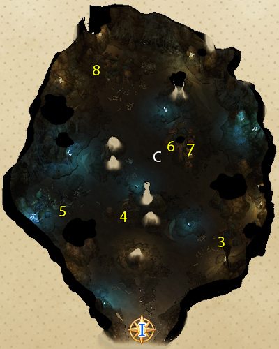 - [지역 A]: 입장하고 조금만 앞으로 가면 발생하는 이벤트. 대화로 평화롭게 이야기를 나눌 수도 있으나, 전투를 하면 켄타우로스 순찰대 대장에게서 인도하는 빛의 투구를 얻을 수 있다.