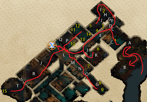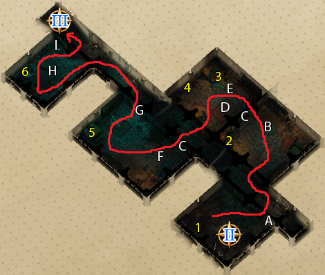 - [지역 E]: 지각 DC 0인 단서가 있다. 네번째 단서를 클릭하면 침대에서 부기맨이 나타난다. (안잡아도 되나 보상이 다음과 같다: 흐릿한 형상의 반지, 저항의 망토 +4)