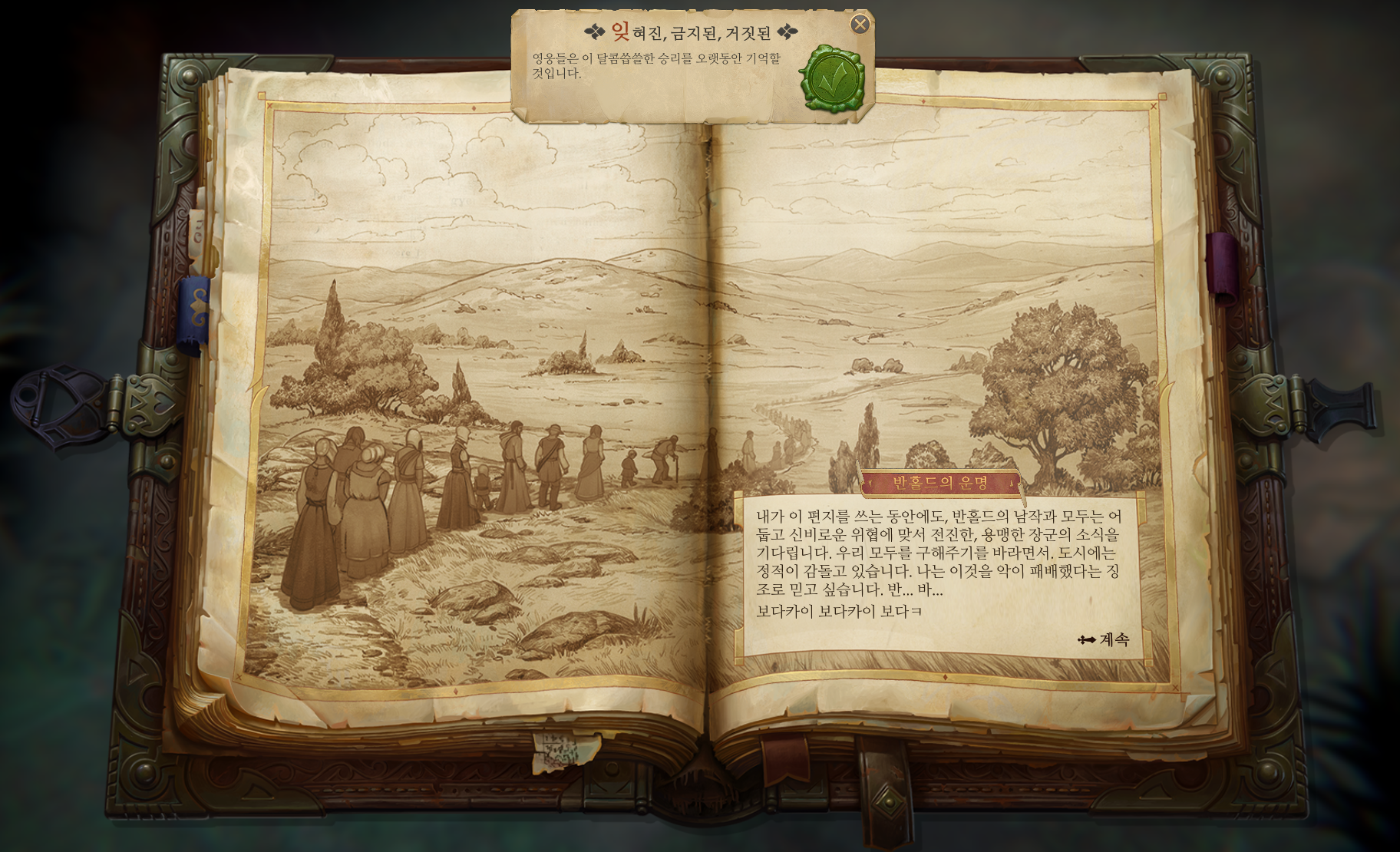 - [지역 A]를 지날 때 메이가르 반이 파티를 떠난다. 좋은 장비를 끼고 있으면 교체해주자. [지역 A]에서 동화책 이벤트. 자유롭게 선택하면 된다.
