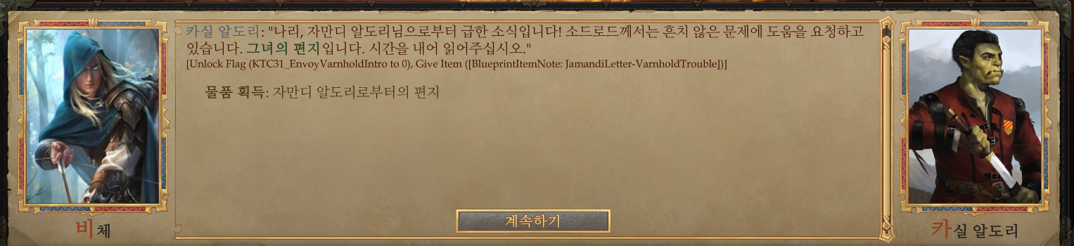 지금 놓치면 영영 불러올 수 없기 때문에, 자만디 알도리로부터 편지를 받게 되면, DLC 반홀드의 운명을 먼저 플레이를 하는 것을 추천한다.