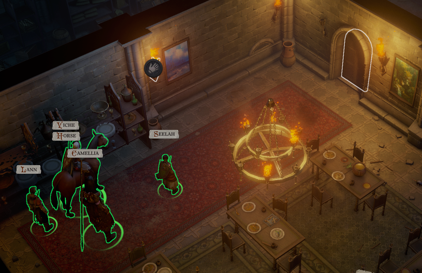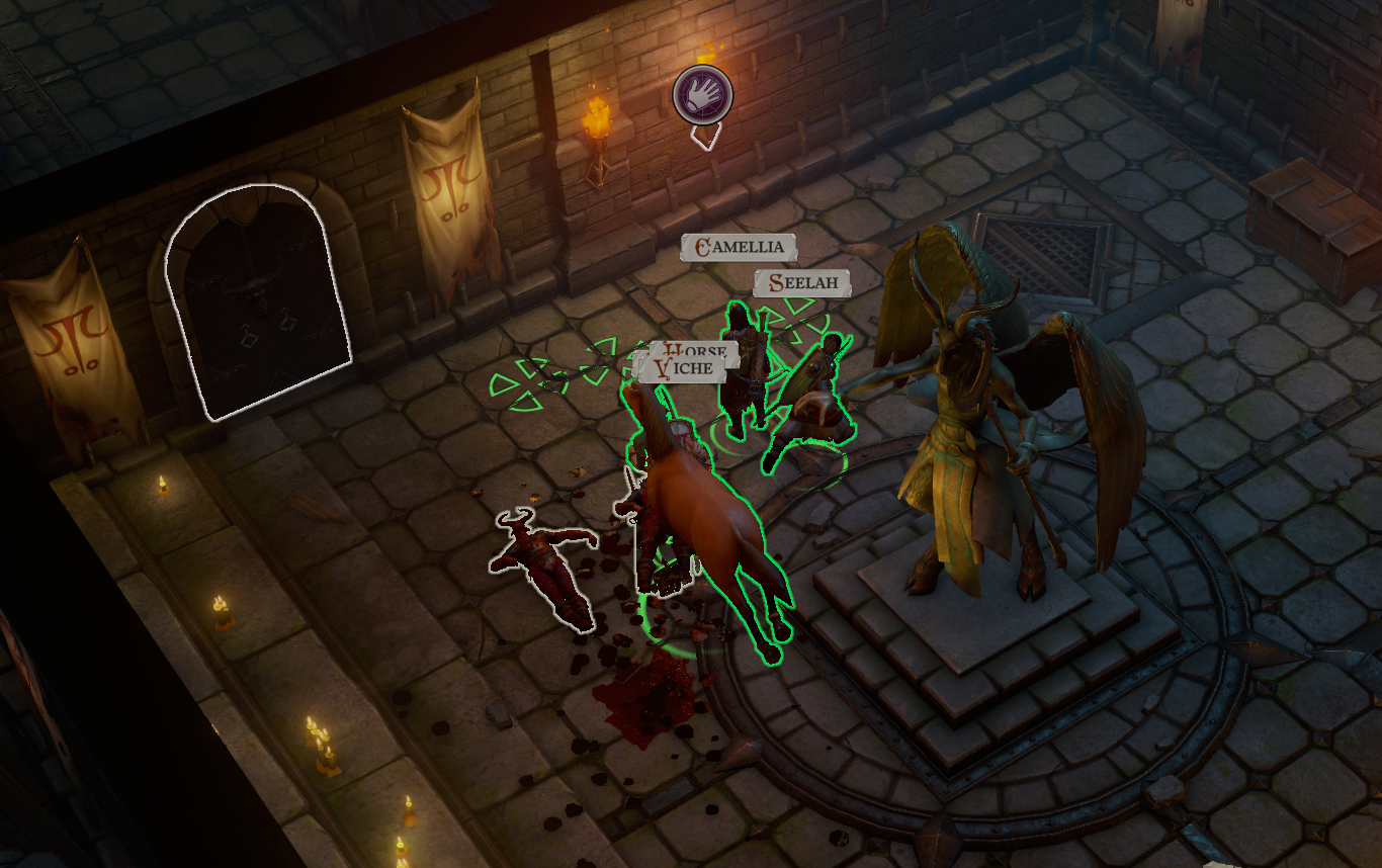 - 전리품으로 호실라의 열쇠(Hosilla's Key)를 챙기자. - [지역 I]: 아래 그림과 같이 석상 옆에 횃불 오브젝트가 있다. 상호작용하면 숨겨진 방이 나타난다.