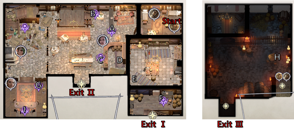 - [지역 D] : 바텐더인 제밀 호크스(Gemyl Hawkes)와 대화하자. 가볼만한 곳이 있는지 물어보면 Pitaxian Wine Cellar를 알려준다. 그리고 그와 거래하여 아이템을 정비하자. Spicy Pastry 조리법과 몇가지 좋은 장비도 판다.
