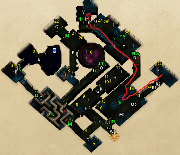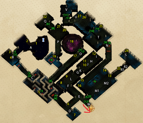 - 전리품: 속삭이는 영혼의 지팡이 외 잡템 - 스위치 /1 눌러서 문[1] 열기