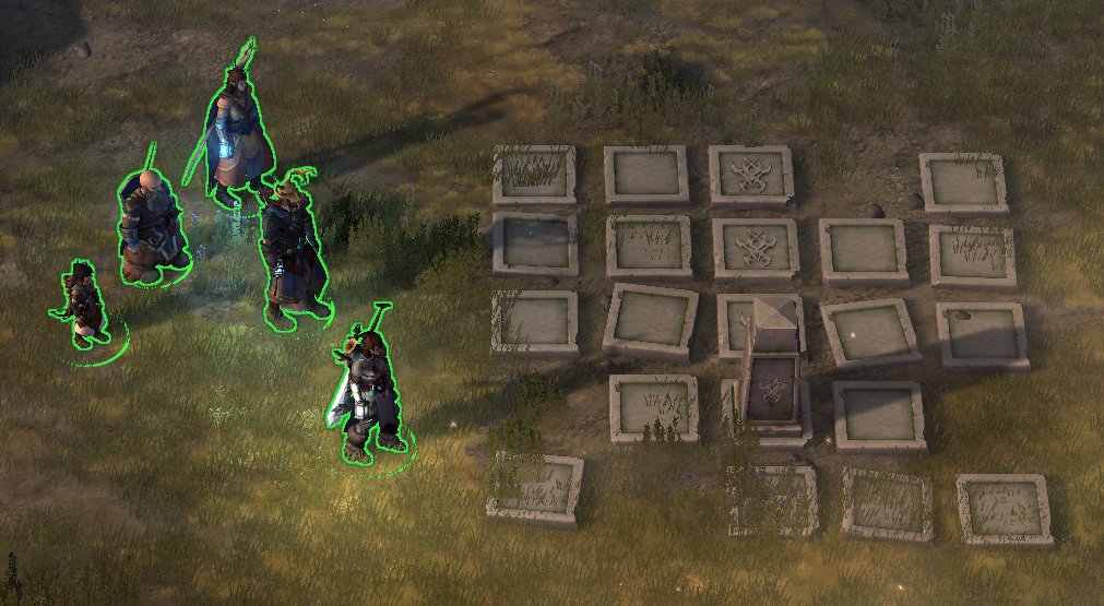- 지역 한가운데로 가보면 5×5 타일이 있고, 비석이 하나가 있다.
