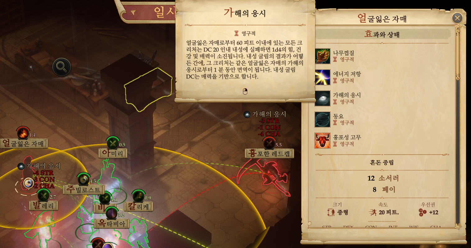 - 전투 팁: 얼굴잃은 자매의 접촉AC가 낮다. 악취나는 구름이 유용하다.