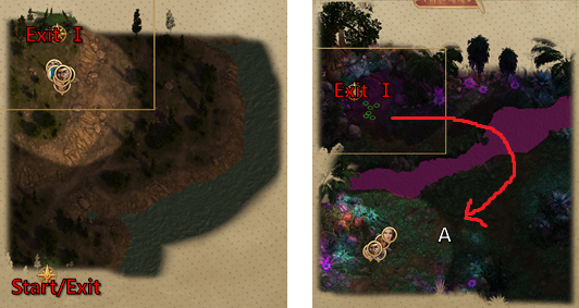- [지역 A]에 여울의 여인이 있다. 이녀석은 '이끌림의 오라'를 가지고 있는데 매우 성가시다. (여성에게 성적 매력을 느끼는 모든 크리쳐는 의지 DC 23 실패하면 현혹; 잡기 전에 저장을 하도록 하자. 독, 냉기피해 면역이다.