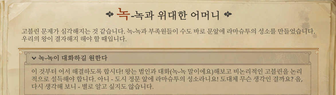 알현실에서 고블린들이 문제를 일으킨다는 소식을 듣는다.
