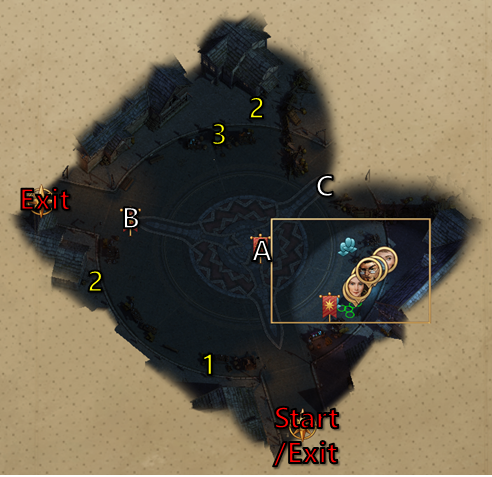 - [지역 B]에서 칸 베릴을 만날 수 있다. 악 성향 선택지나 협박 DC 42 선택지로 아군으로 만들 수 있다.