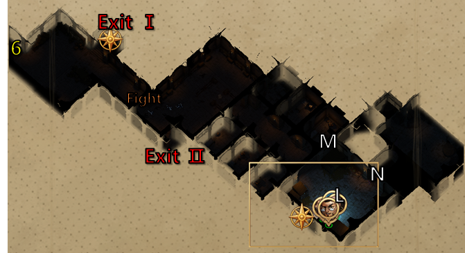 - 이제 출구 Ⅱ로 올라가자. 함정을 제거하고 남서쪽으로 진행하고 나서 [지역 O]로 가도록 하자. [지역 O] 들어가기 전에 저장.
