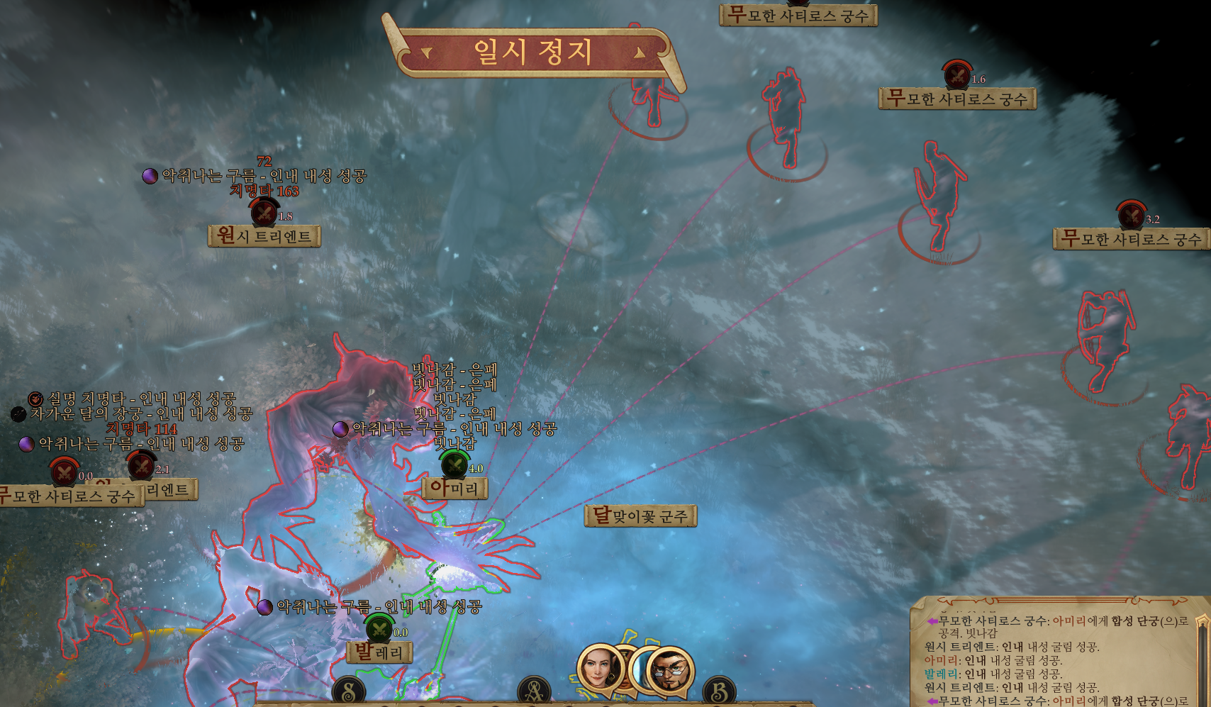 지역에 진입하면 집단 화살로부터 보호 버프를 두르자.