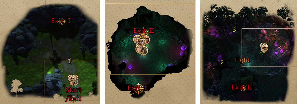 - [출구 Ⅰ]을 거쳐 [출구 Ⅱ]로 들어가기 전에 풀버프를 하고 들어가자. 강력한 적이 있다.