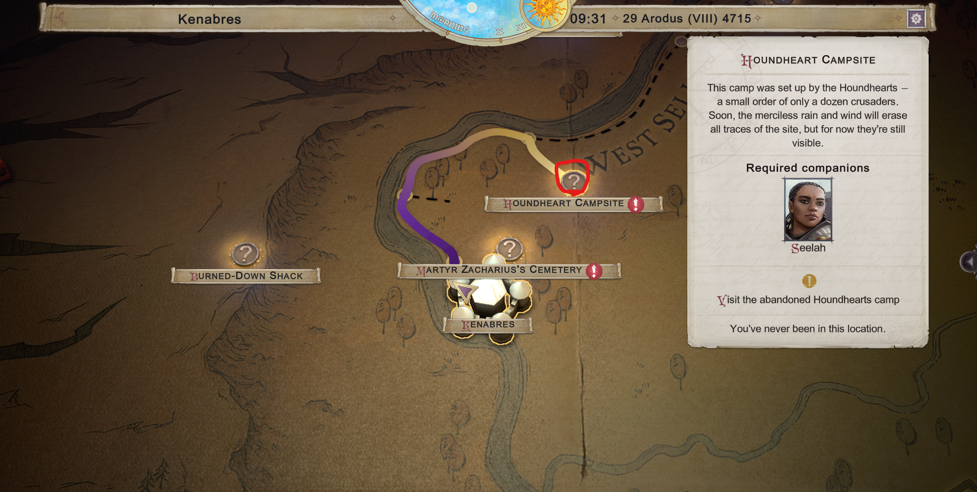 실리와 함께 Houndheart Campsite로 향합시다. Houndheart Campsite [지역 A]에 접근하면 대화 이벤트가 발생합니다. 버프를 어느정도 해둔 후에 [지역 B]에 가서 상자들을 확인하세요. Melted Shard of a Ring획득하세요. 상자를 열다보면 퀘이시트(Quasit)가 등장합니다. 퀘이시트를 따라다니다 보면은 이벤트가 발생합니다. 이벤트가 끝나면 아이템들을 챙깁시다. - 아이템#1: Hat of Heartening Song - 아이템#2 : [지역 C]에서 기동성 DC 20 체크 / (지각DC20) Devine Protector 외 잡템 이제 캠프로 돌아가서 실라에게 말을 걸면 퀘스트가 완료됩니다. 패스파인더 의인의 분노 공략 - 메인 페이지 바로가기